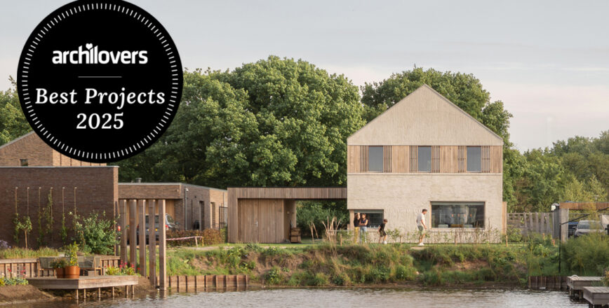 De woning is gelegen op de kop van een nieuwe waterplas. De archetypische vorm van een huisje trekt meteen de aandacht, zonder opzichtig te zijn.
